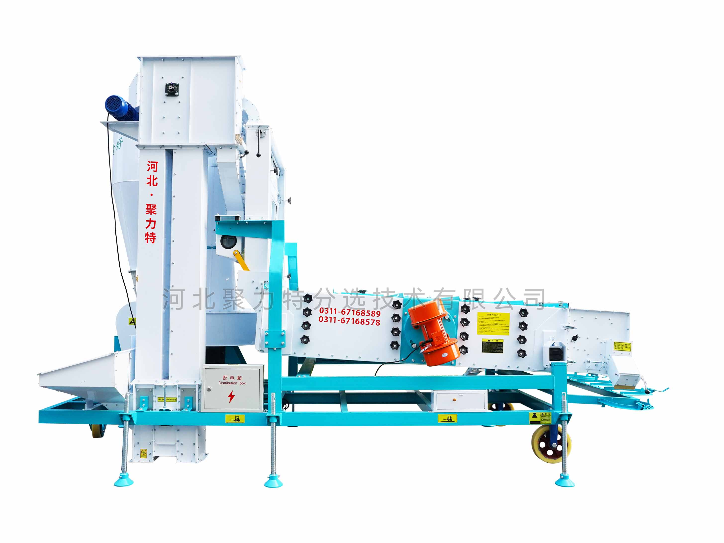 5XFS系列風(fēng)篩清選機(jī)由超低速無(wú)破碎提升機(jī)、環(huán)保除塵器、密閉回轉(zhuǎn)卸灰閥、立式空氣篩、振動(dòng)分級(jí)篩五部分組成。物料經(jīng)提升機(jī)進(jìn)入散糧箱,被均勻分散進(jìn)入立式風(fēng)篩,物料在風(fēng)力的作用下分離出輕雜質(zhì),輕雜質(zhì)經(jīng)旋風(fēng)除塵器過(guò)濾后由回轉(zhuǎn)卸灰閥排出,其余物料進(jìn)入篩箱,根據(jù)物料的外形尺寸來(lái)調(diào)整不同規(guī)格的精密沖孔篩片,去除大雜和小雜,同時(shí)通過(guò)增減篩片的層數(shù)將成品分成大粒、中粒、小粒。