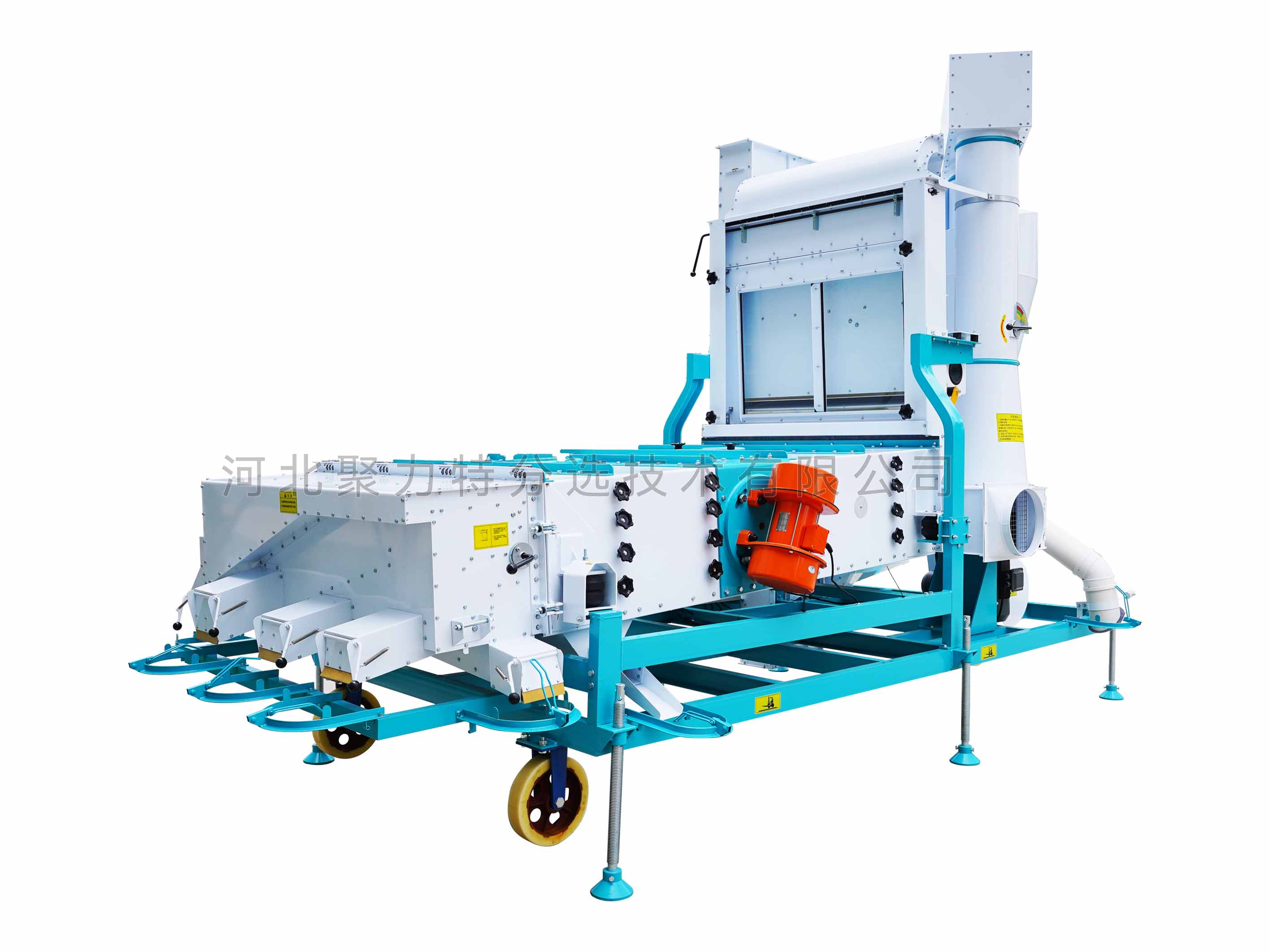 1、本機(jī)增加二次除塵,能將輕雜質(zhì)中秕粒、秸稈和粉塵糠殼分離開(kāi);